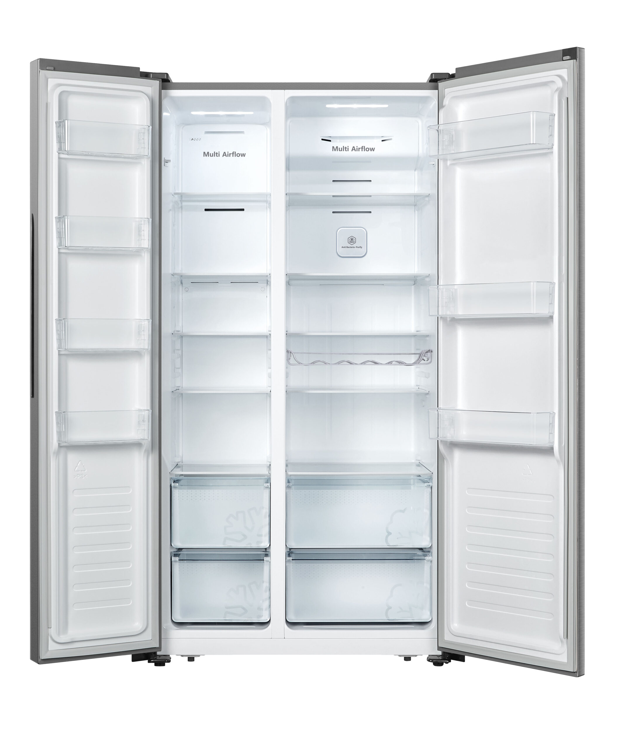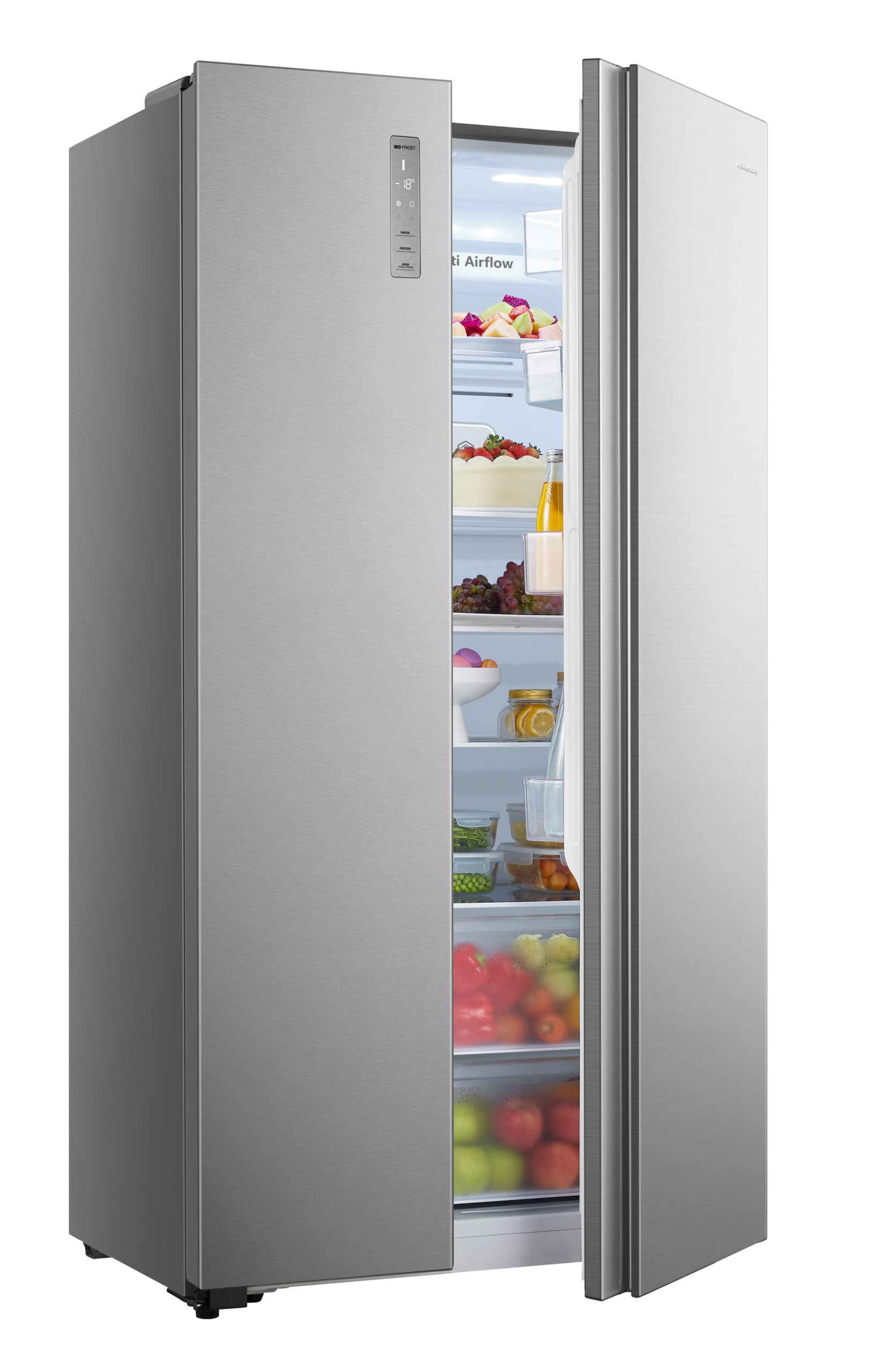 Met het coole side-by-side ontwerp waar Amerikaanse koelkasten en diepvriezers bekend om staan, stelt de Hisense RS670N4BC, die verkrijgbaar is in twee verschillende energie-efficiëntieklassen, in staat om deze trendy look in uw keuken te brengen. Met Total No Frost en Multi Air Flow hoeft u zich geen zorgen meer te maken over ontdooien. De Inox-look en een LED-display maken het stijlvolle uiterlijk compleet.