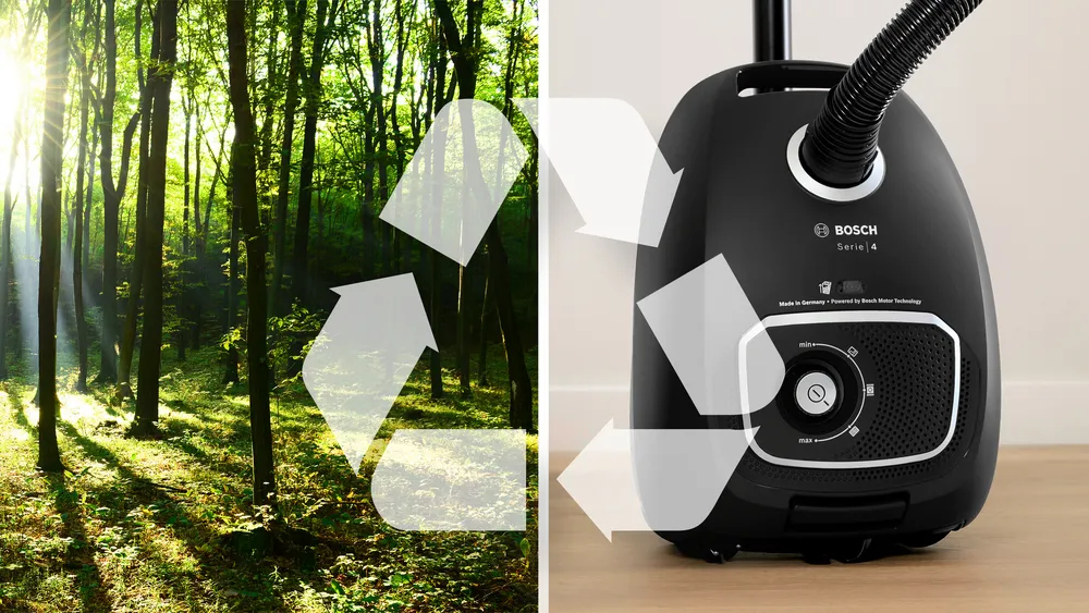Bosch zet zich in voor duurzaamheid en daarom zijn Bosch-stofzuigers ontwikkeld om het milieu en hulpbronnen te sparen. Daarom is deze stofzuiger gemaakt van 32% gerecycled plastic, terwijl de verpakking is gemaakt van 95% gerecycled papier met daarin composteerbaar en recyclebaar materiaal. Tot slot, dankzij de duurzame en hoogwaardige Bosch-motor, gemaakt in Duitsland, zul je lang plezier hebben van het apparaat.
