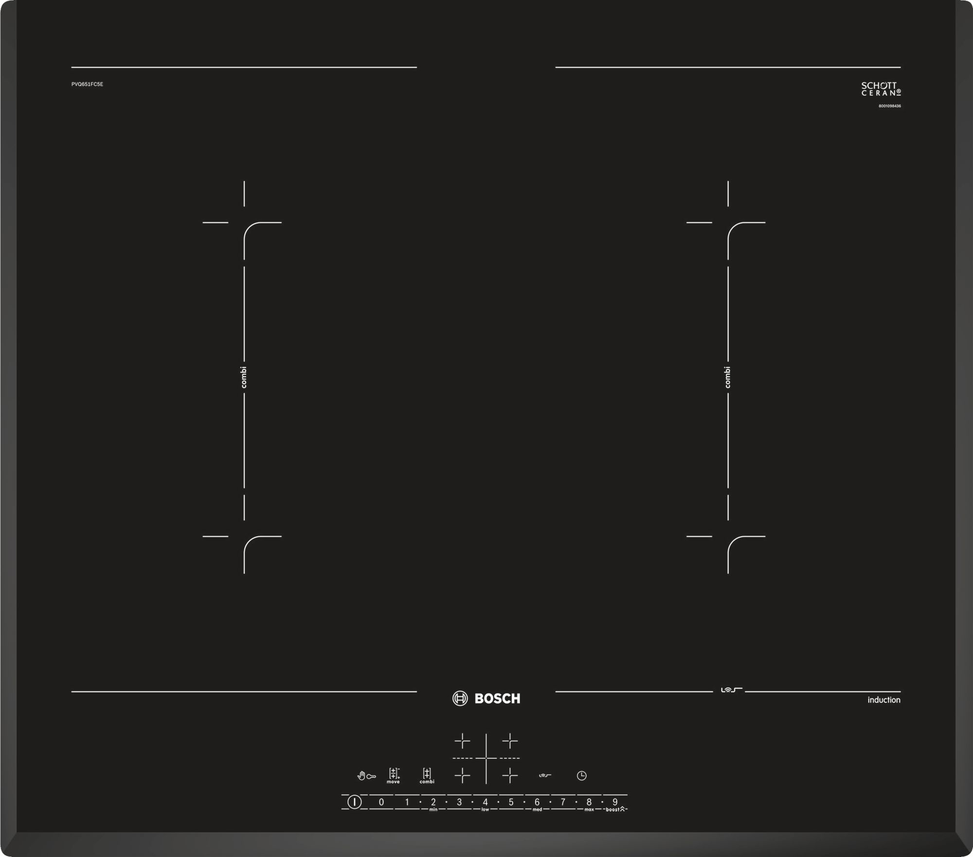 Bosch Serie 6 PVQ651FC5E, Zwart, Ingebouwd, 60 cm, Inductiekookplaat zones, Glaskeramiek, 4 zone(s)