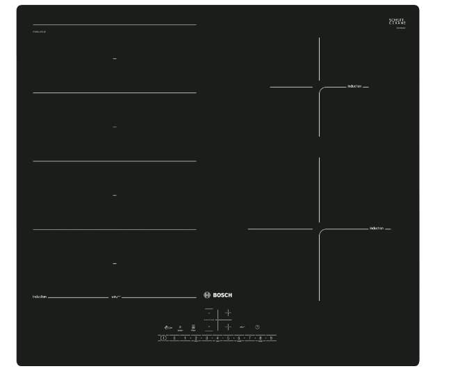 Bosch Serie 6 PXE611FC1E kookplaat Zwart Ingebouwd 60 cm Inductiekookplaat zones 4 zone(s)