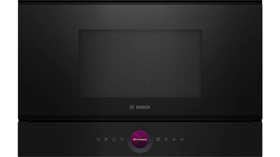 Bosch Serie 8 BFL7221B1. Apparaatplaatsing: Ingebouwd, Type product: Solo-magnetron, Inhoud (binnenkant): 21 l, Magnetronvermogen: 900 W, Ingebouwd display, Type beeldscherm: TFT, Soort bediening: Touch, Kleur van het product: Zwart