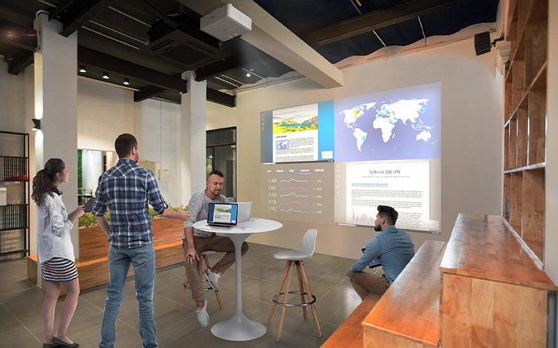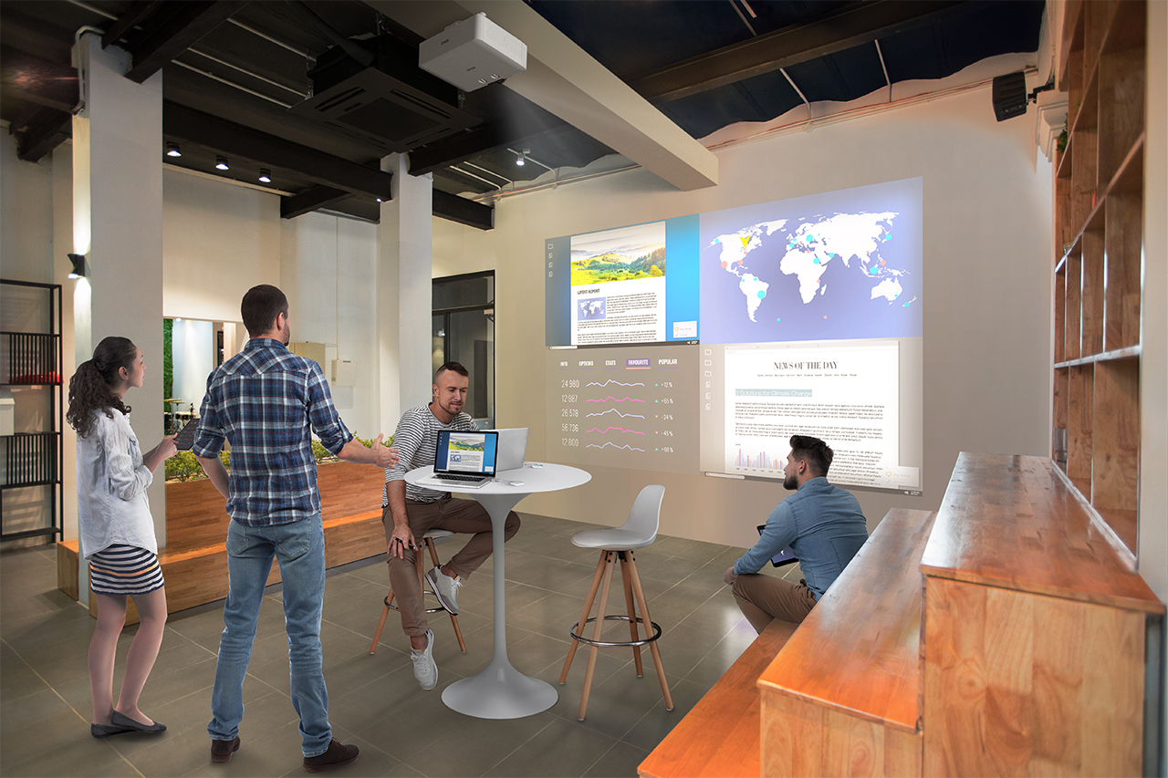 Deze stijlvolle en compacte projector ondersteunt 360 graden installatie zonder dat dit ten koste gaat van de beeldkwaliteit en ondersteunt 16:6 ultra breedbeeld, HDMI-uitvoer en edge blending voor installatie van meerdere projectoren.