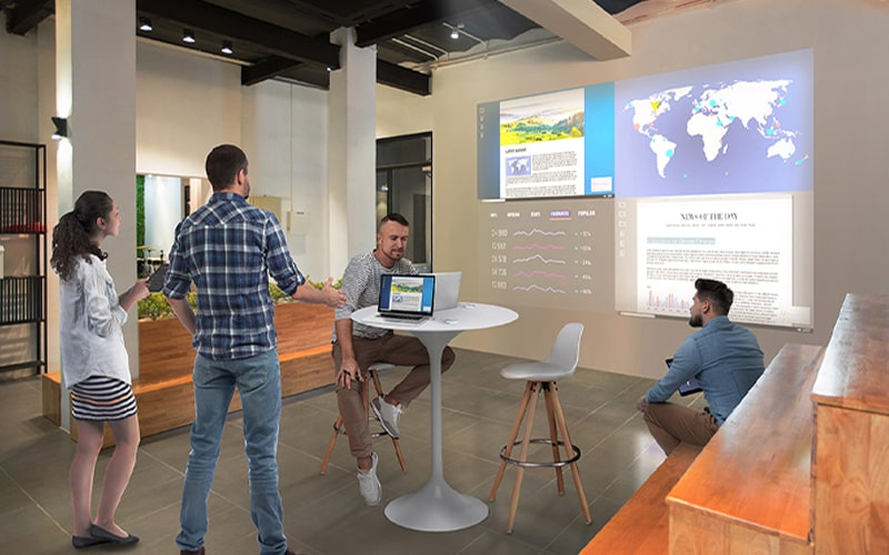 Deze stijlvolle en compacte projector ondersteunt 360 graden installatie zonder dat dit ten koste gaat van de beeldkwaliteit en ondersteunt 16:6 ultra breedbeeld, HDMI-uitvoer en edge blending voor installatie van meerdere projectoren. Ook beschikbaar in zwart. Ook beschikbaar in wit.