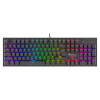 GENESIS Thor 300 RGB. Toetsenbord formaat: Volledige grootte (100%). Stijl toetsenbord: Recht. Connectiviteitstechnologie: Bedraad, Aansluiting: USB, Toetsenbord toetsschakelaar: Mechanische keyswitch, Toetsenbordindeling: QWERTY, Aantal toetsen, toetsenbord: 104. Backlight type: RGB LED. Snoerlengte: 1,75 m. Aanbevolen gebruik: Gamen. Kleur van het product: Zwart