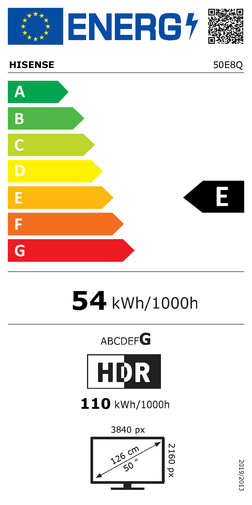 Hisense 50E8Q. Beeldschermdiagonaal: 127 cm (50″), Resolutie: 3840 x 2160 Pixels, HD type: 4K Ultra HD, Display technologie: LED, Beeldscherm vorm: Flat, LED backlight-type: Mini LED. Smart TV. Helderheid: 600 cd/m², Responstijd: 6 ms, Typische contrastverhouding: 5000:1, Oorspronkelijke beeldverhouding: 16:9. Formaat digitaal signaal: DVB-C, DVB-S, DVB-S2, DVB-T, DVB-T2. Wifi, Ethernet LAN. Kleur van het product: Zwart, Grijs