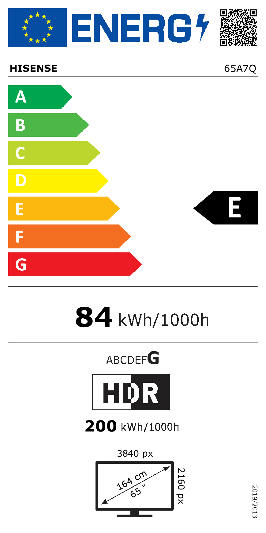 Hisense A7Q 65A7Q, 165,1 cm (65″), 3840 x 2160 Pixels, LED, Smart TV, Wifi, Zwart