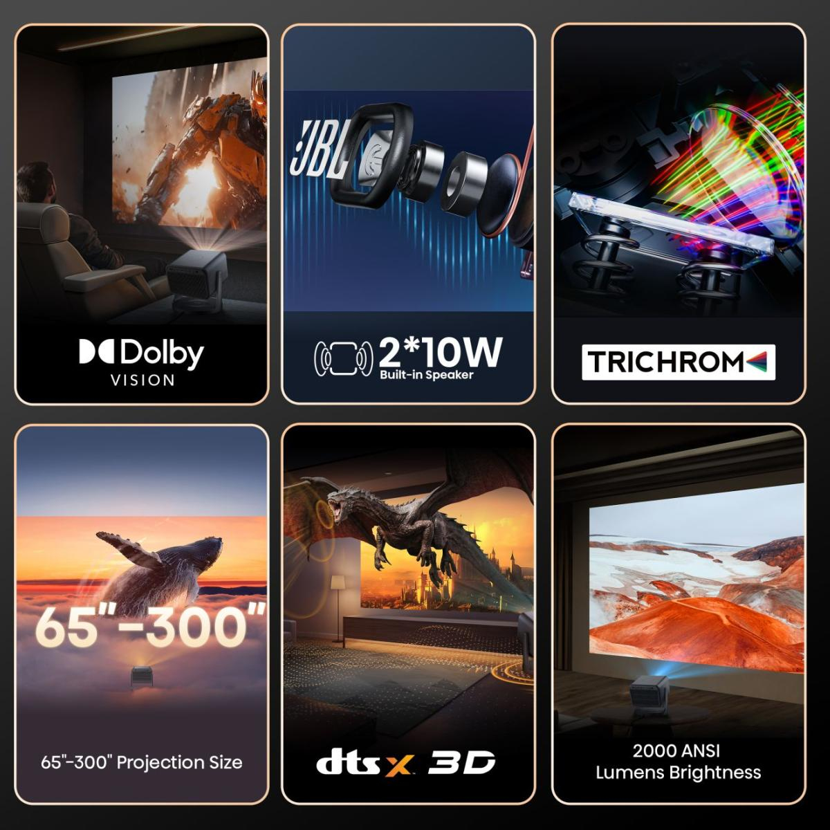 Breng de ultieme thuisbioscoopervaring in je woonkamer met deze slanke 4K UHD-projector van Hisense. Met 2000 lumen aan laservermogen barsten films en programma’s van de scherpe, levensechte details op elk vlak oppervlak. Je hoeft je niet druk te maken over ingewikkelde setups — geavanceerde autofocus betekent dat je snel het ultra high-definition beeld kunt optimaliseren met een simpele druk op de knop. Knip de snoeren door en stream draadloos via dual-band WiFi of ethernet vanaf al je favoriete apps en apparaten. Met zijn moderne grijze ontwerp en ruimtebesparende voetafdruk past deze aangesloten projector naadloos in elk interieur en levert hij spanning op een groot scherm. Laat je jarenlang onderdompelen in glorie met een resolutie van 3840 x 2160 dankzij de duurzame laserlichtbron.