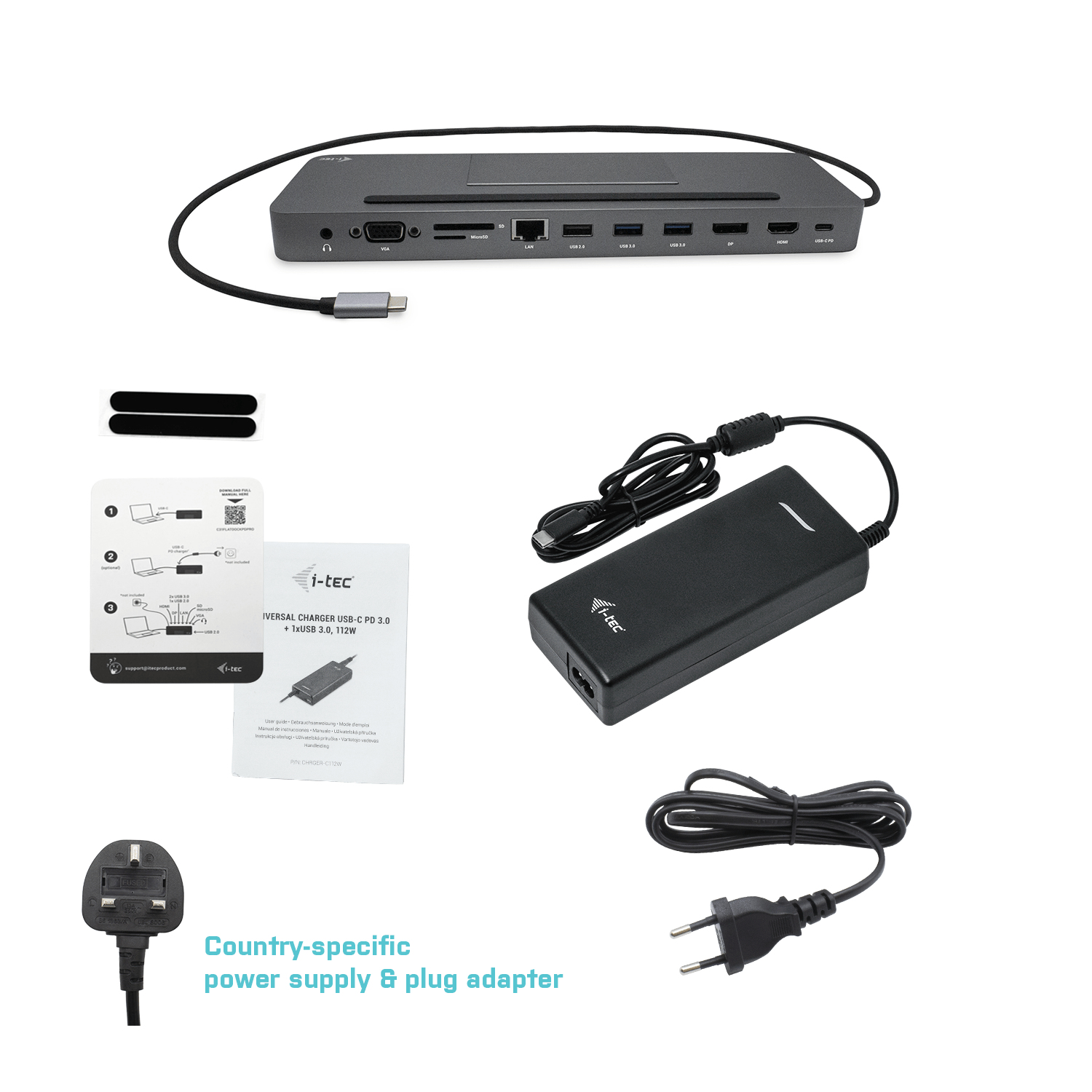 i-tec Metal USB-C Ergonomic 4K 3x Display Docking Station with Power Delivery 85 W + Universal Charger 112 W