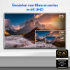 Met deze UHD Smart TV zie je gewoon meer, want de QLED-technologie zorgt voor bijzonder levendige kleuren met een hoge helderheidswaarde. Hierdoor kun je je favoriete content op een geheel nieuwe manier ervaren op het grote schermdiagonaal van 43 inch (108 cm) – of het nu gaat om series, films, sportuitzendingen of videogames. De TV ondersteunt ook HDR en Dolby Vision® voor een bijzonder contrastrijke weergave. Net zo briljant: Je bent je eigen programmadirecteur en hebt de flexibiliteit om te bepalen wat er op is. Met drie HDMI-ingangen kun je verschillende eindapparaten aansluiten, van settopboxen tot spelconsoles. Je kunt live tv kijken zonder extra hardware via de ingebouwde drievoudige tuner. Je kunt de UHD TV aansluiten op het internet via Wi-Fi of Ethernet kabel en direct toegang krijgen tot apps zoals de streamingdiensten Netflix en Amazon Prime Video. Je kunt je eigen muziek, foto’s en video’s afspelen via de geïntegreerde mediaspeler. Dit is thuisbioscoop met extra gemak!