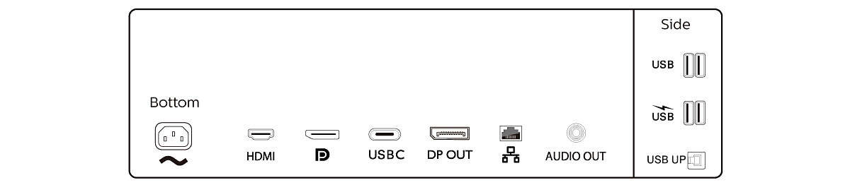 | Meegeleverde kabels | HDMI, DisplayPort, USB Type-C, AC |