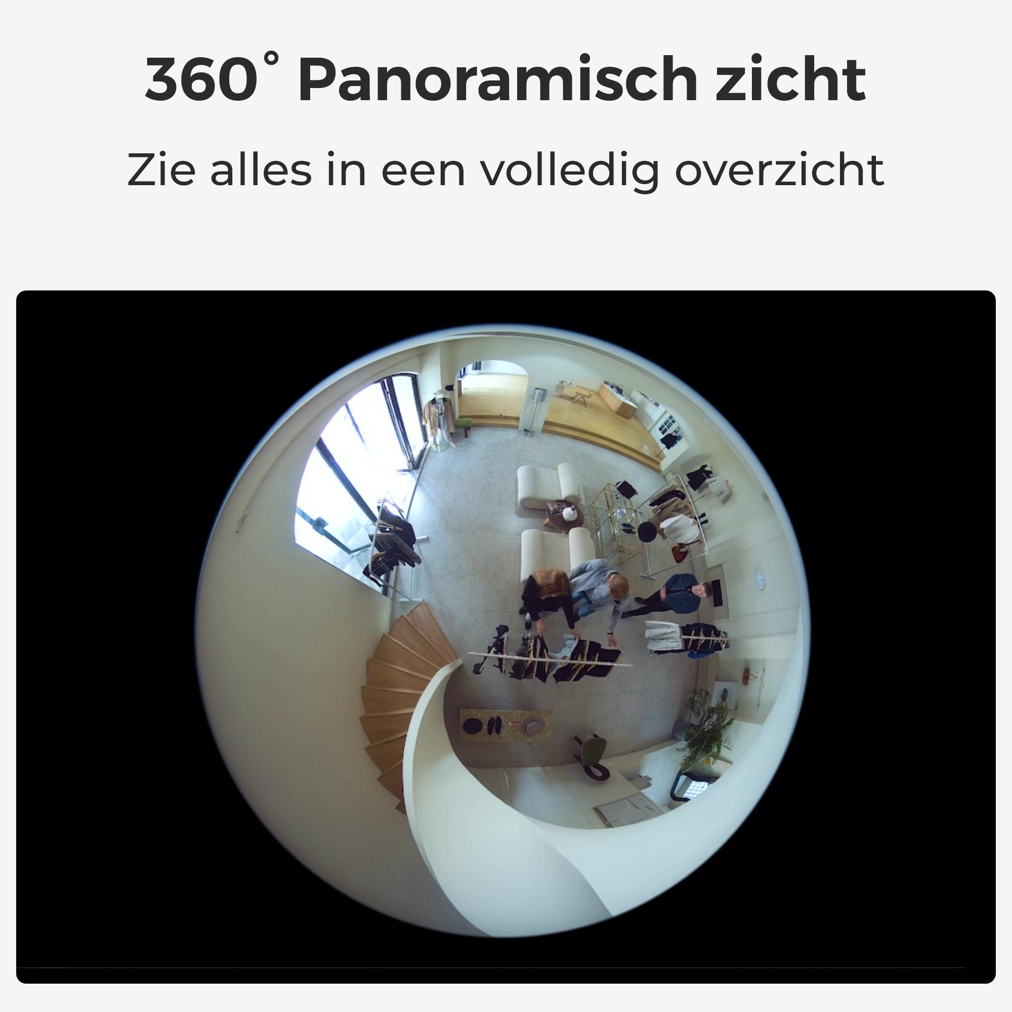 Met een kijkhoek van 180° horizontaal en verticaal, biedt het een panoramisch veld van 360° voor een volledig zicht op al uw eigendommen.