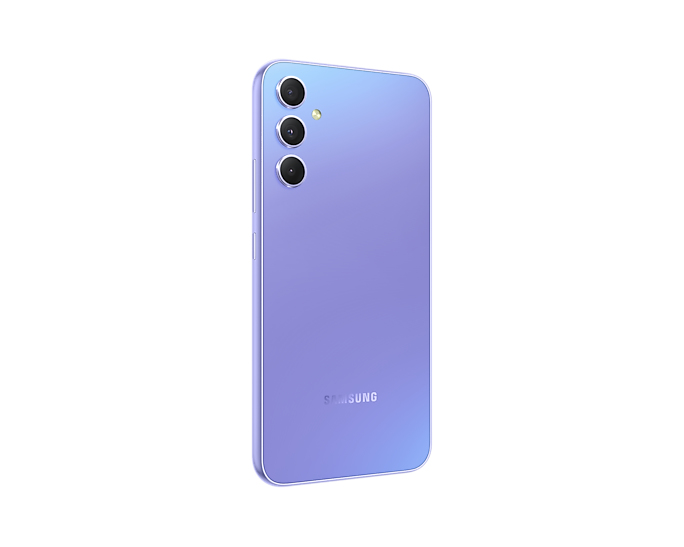 De Galaxy A34 5G heeft strakke lijnen en een schitterende afwerking van glas. Hij is beschikbaar in trendy en tijdloze kleuren, zoals Awesome Lime, Awesome Silver, Awesome Violet en Awesome Graphite.
