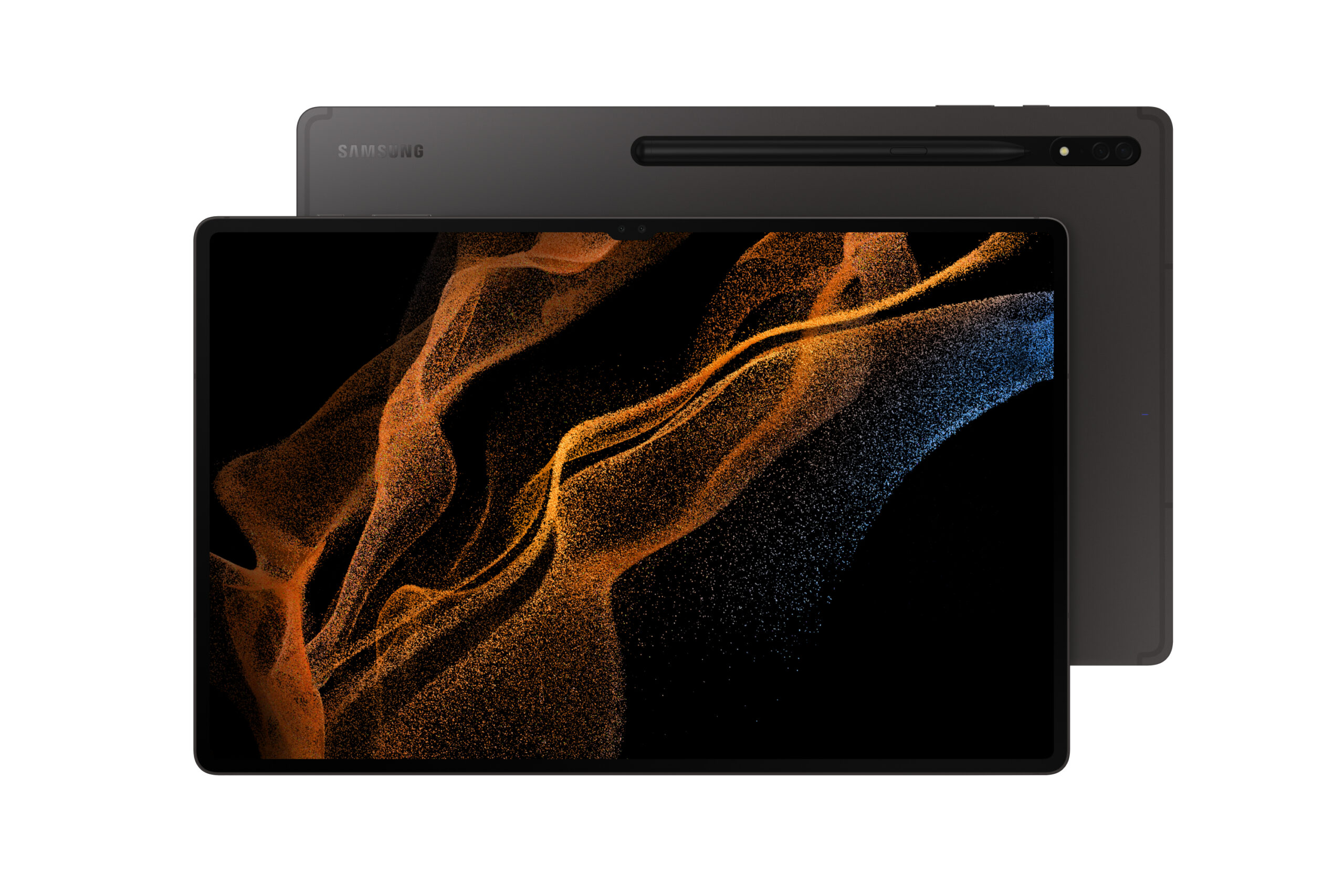Samsung Galaxy Tab S8 Ultra . Beeldschermdiagonaal: 37,1 cm (14.6″), Resolutie: 2960 x 1848 Pixels, Display technologie: OLED. Interne opslagcapaciteit: 256 GB. Frequentie van processor: 2,99 GHz, Processorfamilie: Qualcomm Snapdragon, Processormodel: SM8450. Intern geheugen: 12 GB. Resolutie camera achterzijde (numeriek): 13 MP, Resolutie camera voorzijde (numeriek): 12 MP. Wifi-standaard: Wi-Fi 6E (802.11ax). Geïntegreerde geheugenkaartlezer. Gewicht: 728 g. Inclusief besturingssysteem: Android 12. Kleur van het product: Grafiet