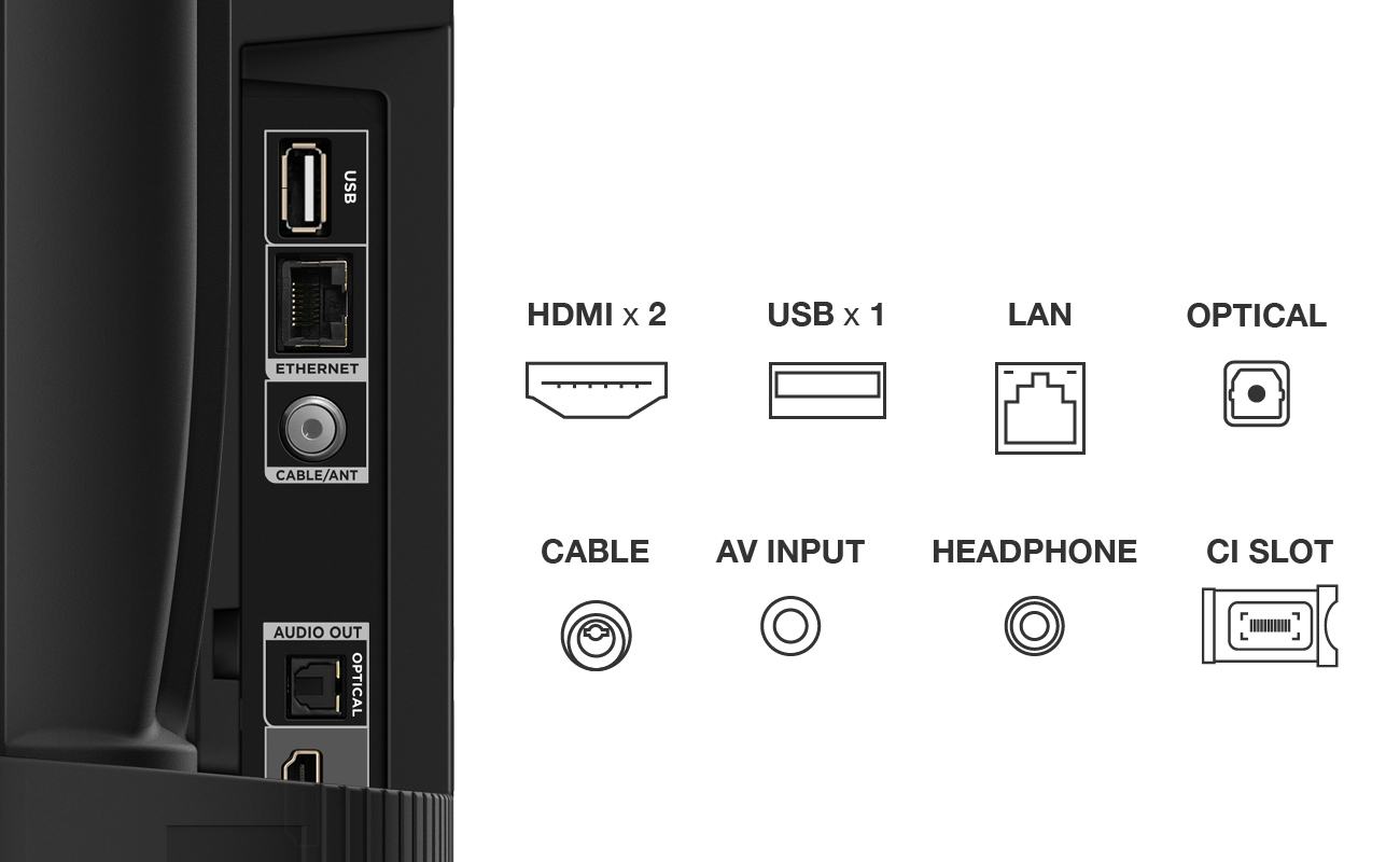 | TCL-technologieën (AV/TV) | Android TV, Bluetooth, Dolby Audio®, HDMI ARC, HDMI eARC, HDR (High Dynamic Range), Micro Dimming |
