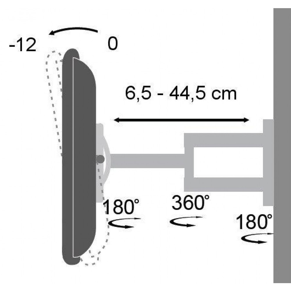 Techly ICA-LCD 2903. Maximale gewichtscapaciteit: 25 kg, Minimale schermgrootte: 48,3 cm (19″), Maximale schermgrootte: 94 cm (37″), Montage interface compatibiliteit (min): 75 x 75 mm, Montage interface compatibiliteit (max): 200 x 200 mm. Bereik kantelhoek: -12 – 0°, Horizontaal draaibaar: 0 – 180°, Afstand tot de muur (min): 6,5 cm, Afstand tot de muur (max.): 44,5 cm. Kleur van het product: Zwart