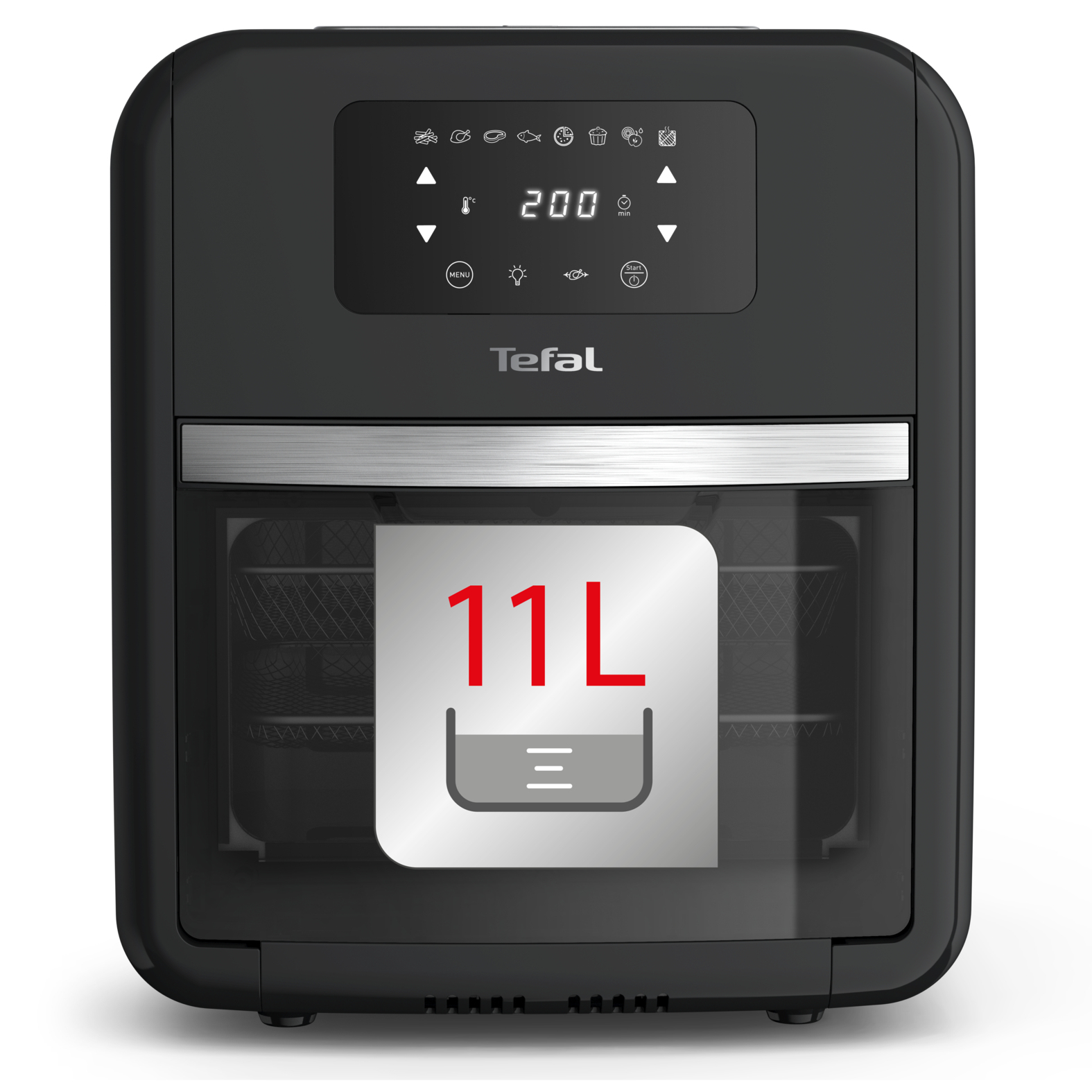 Van extra knapperig eten tot een geweldige grillsmaak, met de Tefal Easy Fry Oven & Grill bereid je de heerlijkste gerechten én ook nog eens olievrij! Deze handige all-in-one machine beschikt over 9 functies: frituren, bakken, bakken met hetelucht, braden, grillen, roosteren, rotisserie, voedsel drogen en een opwarmfunctie. Met 8 automatische programma’s (frites, kip, vlees, vis, pizza, cake, drogen, grill) bereid je eenvoudig gevarieerde gerechten. De Easy Fry Oven & Grill is inclusief accessoires zoals grillrooster en meerdere rekken/roosters zodat je eenvoudig tot wel drie gezonde maaltijden tegelijk kunt bereiden waar het hele gezin dol op is. De veelzijdige accessoires en grote capaciteit zijn perfect voor het bereiden van verschillende recepten en bieden variatie in de keuken. De nauwkeurige temperatuurregeling voor uitstekende resultaten zorgt. Met de handige timer weet je precies wanneer je bereiding klaar is. Het apparaat is eenvoudig te reinigen, de losse onderdelen zijn namelijk vaatwasmachinebestendig, voor optimaal bakplezier. Wanneer je kookt met de heteluchtfriteuses van Tefal bespaar je tot 70% aan energie*.